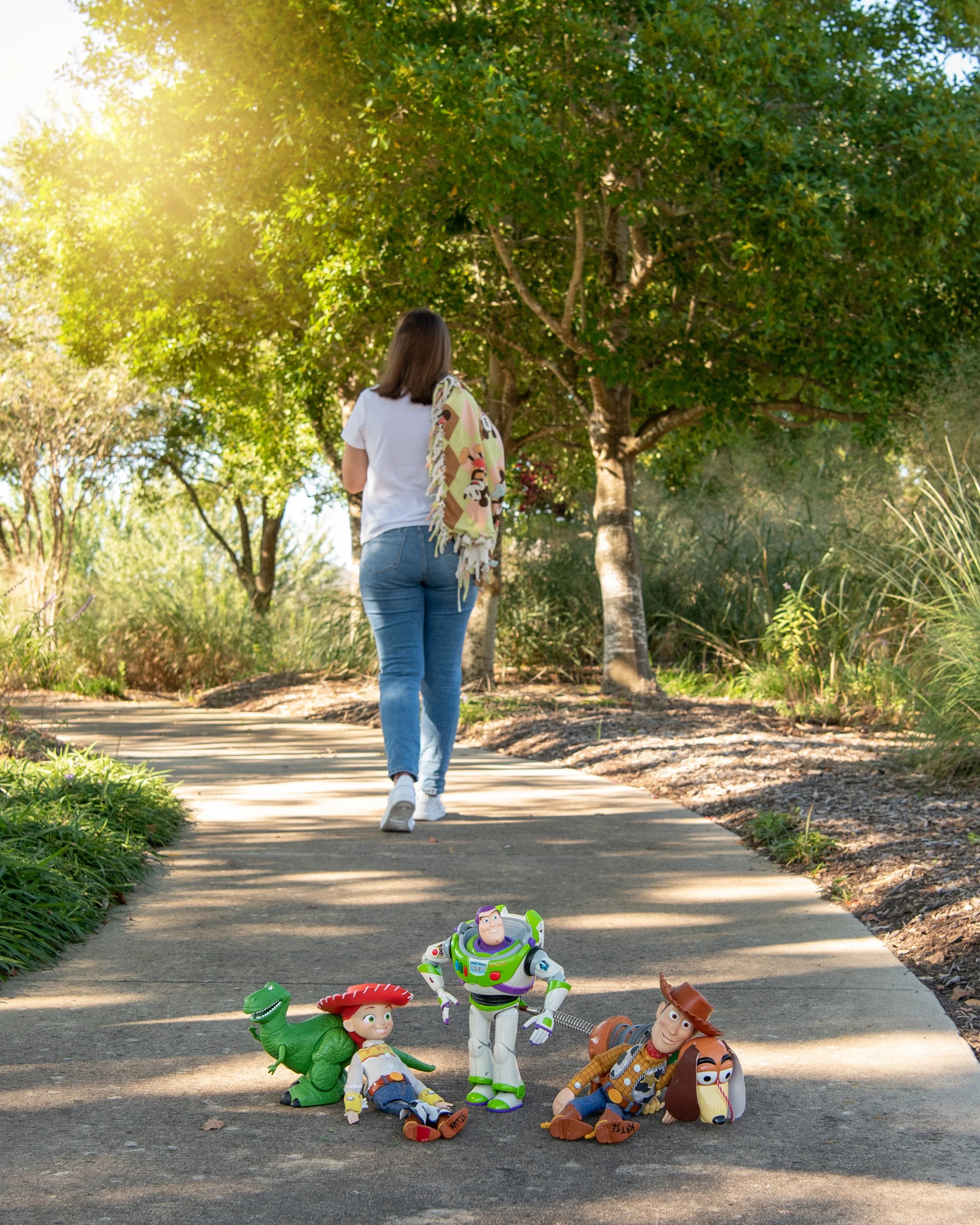 We started the shoot at a beautiful like pocket park in Cinco that looked great with her hard-earned letterman jacket. Also, if you know Katie, you know she is a big kid at heart and one of her all time favorite movies is Toy Story. We had a few shots in mind that were “must haves” including that icon moment in the movies where Andy (or in this case, Katie) walks away with the toys.